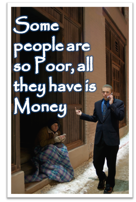 There are those who over-identify with Money. That is they are ruled by Money decisions, to the extent that they are the Money they have. Rich. Poor. In debt. An Investor. The insured. The assured. The gambler. The shareholder. The scammer. The miser. The account holder. The policyholder. The tax payer.