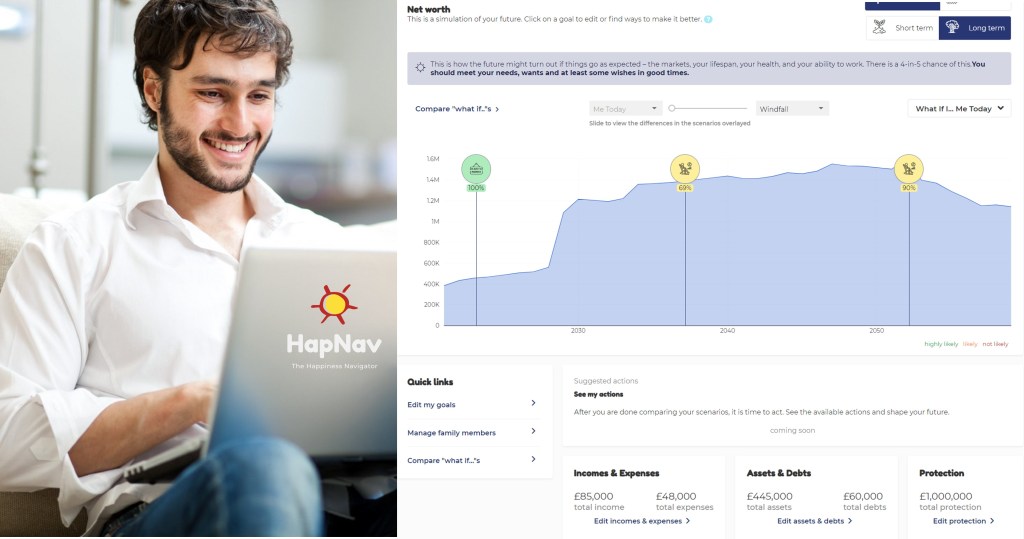 To bring HapNav to market we’ve partnered with Envizage, a London-based fintech that’s reinventing the way people plan for the future. Envizage serves clients worldwide, helping them to engage their end customers so they can achieve better life outcomes.