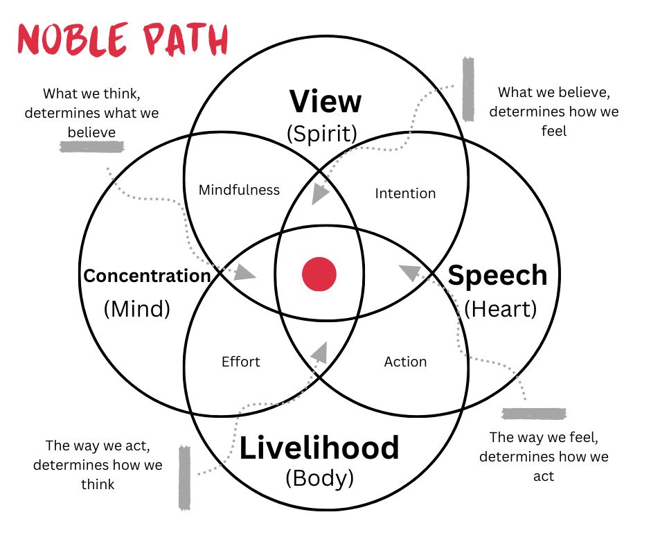 Buddhism: Founded by Siddhartha Gautama (the Buddha) in the 5th century BCE, Buddhism teaches the Four Noble Truths and the Eightfold Path as the means to attain enlightenment (nirvana). The central tenet of Buddhism is the impermanence of all things (anicca) and the cessation of suffering (dukkha) through the realisation of non-self (anatta). The emphasis on meditation, ethical conduct, and wisdom highlights a universal quest for spiritual liberation and inner peace.