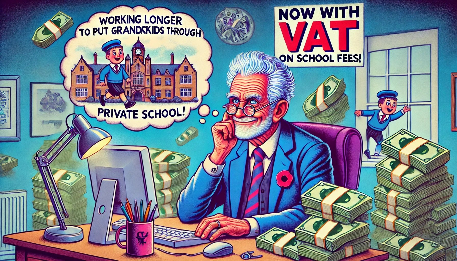 So, here we are again. Just when you thought you could finally kick back and enjoy your golden years, sipping cocktails on a beach somewhere, your kids drop the bombshell: “Hey, Mum and Dad, any chance you could help with the grandkids’ school fees? You know, just to give them a leg up?” And not just any school fees—oh no, we’re talking private school fees, because public school apparently isn’t good enough for little Timmy and Sally.