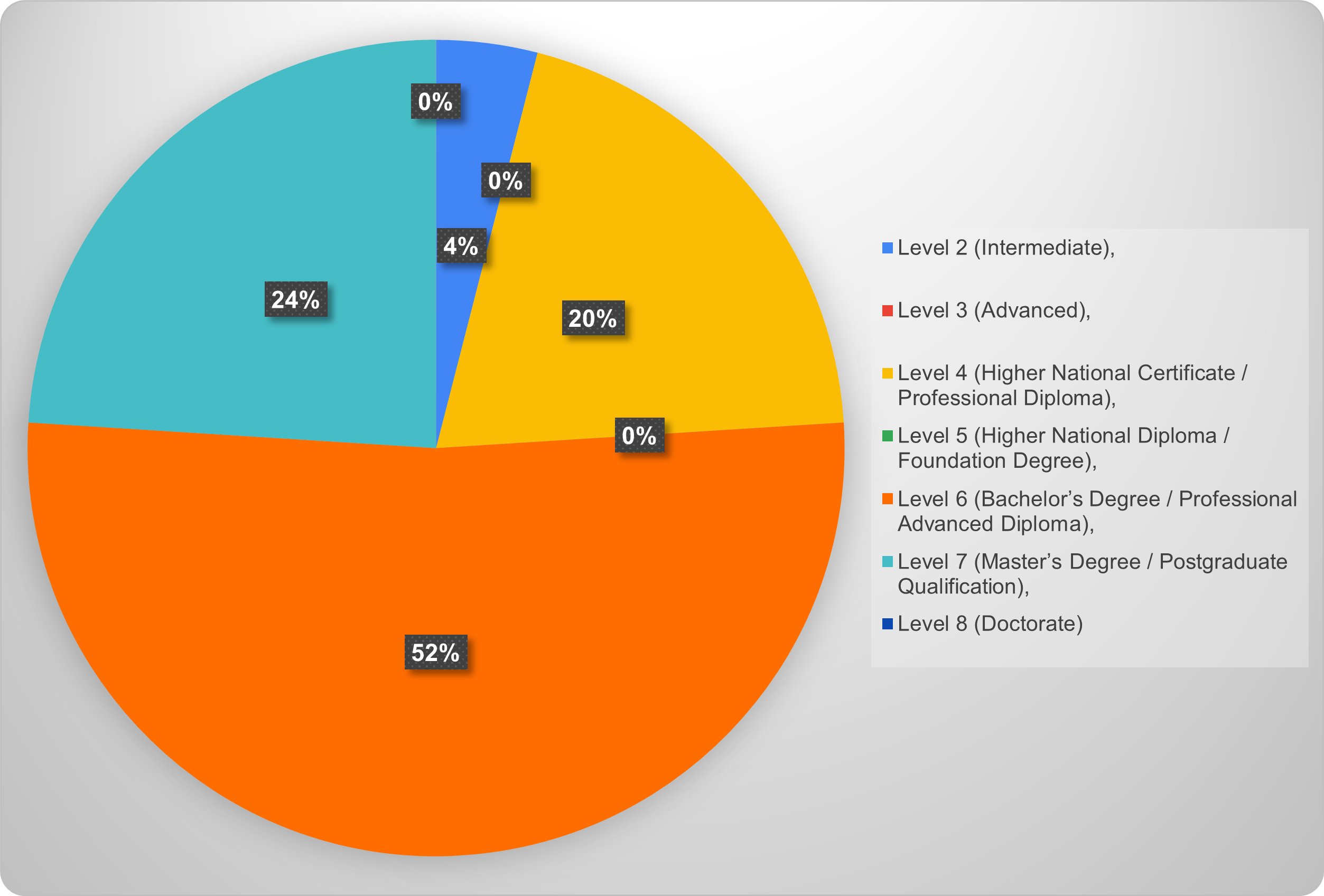 We also have a portion of members who hold Level 4 (20%), signifying they are equipped with industry-recognised professional diplomas. This range of qualifications ensures that our community fosters a collaborative environment where experience, wisdom, and innovative thinking intersect.