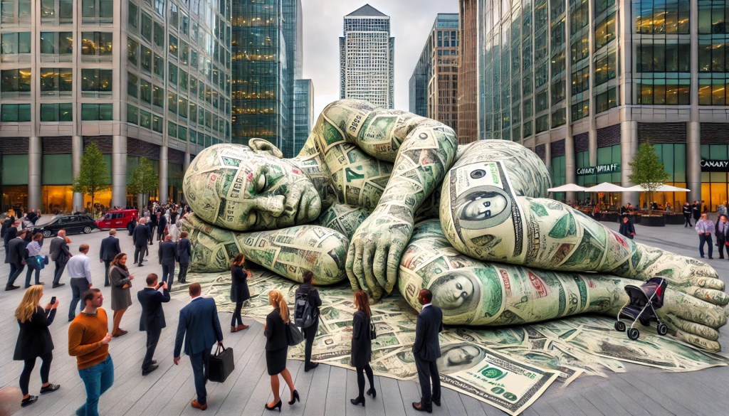 To drive the point home, Flagstone built a giant sculpture out of fake banknotes and dropped it in Canary Wharf. A “sleeping giant” meant to symbolise Britain’s dormant cash. The message? Wake up.