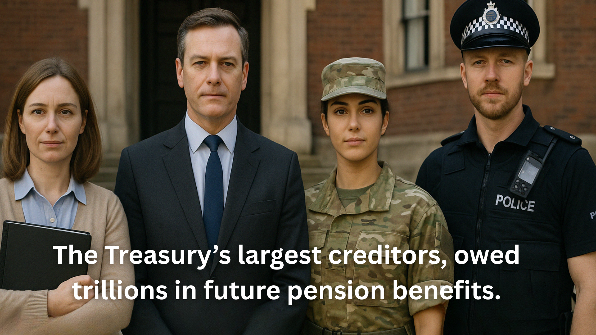 According to the UK Government’s own accounts, the total liability for public sector pensions stands at a staggering £2.6 trillion. That’s 100% of GDP, owed not to banks or foreign investors—but to nurses, teachers, soldiers, civil servants, and police officers. These are earned benefits, promised in return for public service. Yet, the uncomfortable truth is this: there is no fund.