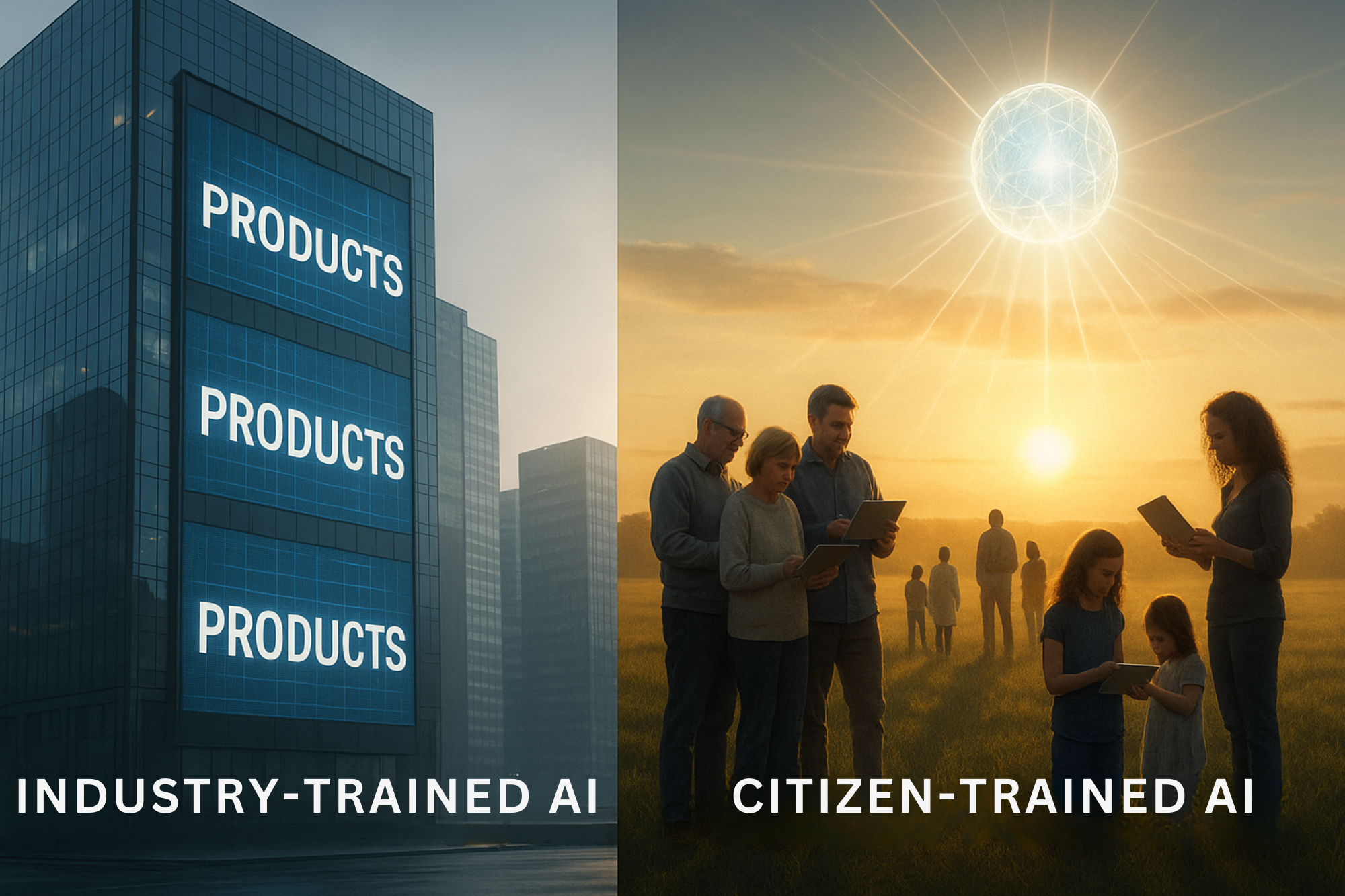 Every day, millions of citizens use open models like ChatGPT, teaching it through interaction. This is citizen-training at scale. If we show it what matters—purpose, values, talents, sovereignty—it learns.