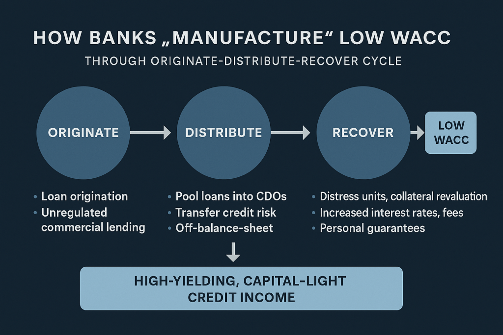 It wasn’t that lending truly lowered WACC — it’s that banks engineered the appearance of low WACC by externalising risk and internalising recovery profit.
