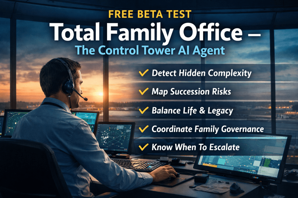 If you would like to trial the Total Family Office – Control Tower AI (Version 1.0), simply contact me and I will send you the instruction prompt and setup guidance.