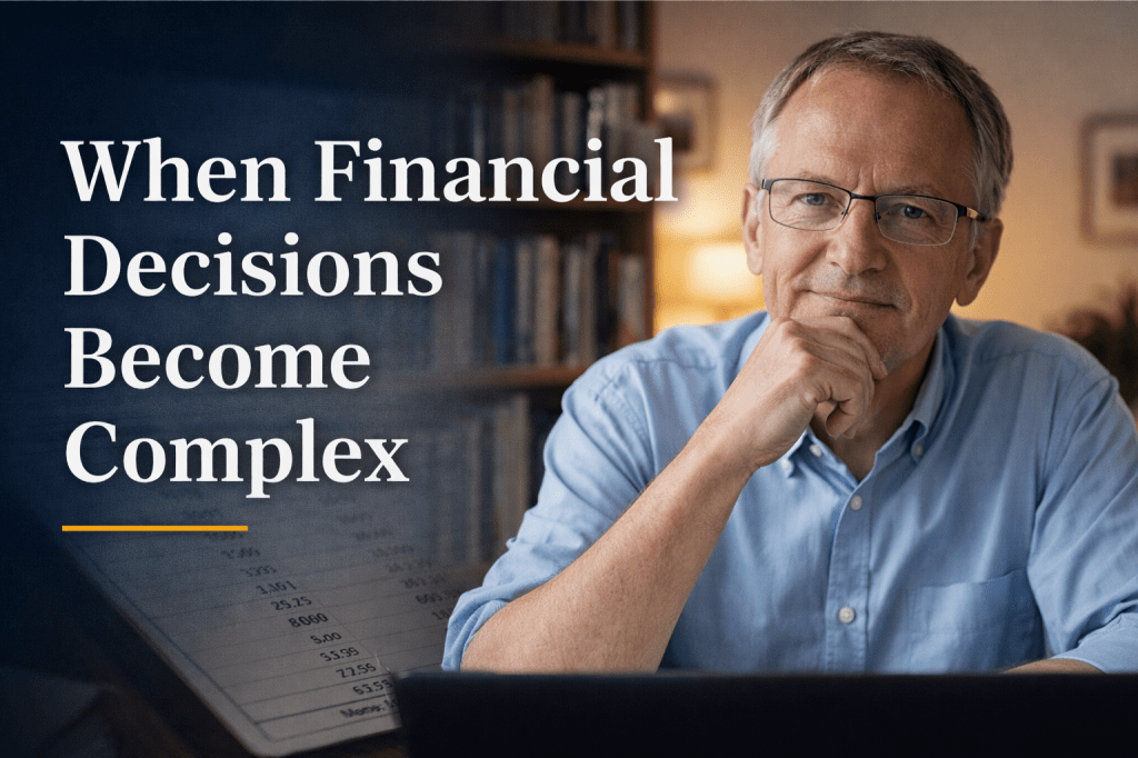Many clients are professionals approaching retirement, business owners, or independent investors navigating change.
