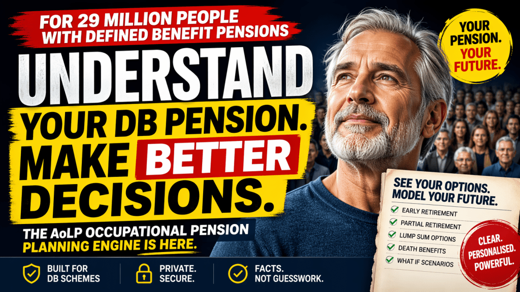 The AoLP Occupational Pension Planning Engine gives defined benefit pension scheme members the ability to understand their entitlements, explore their options, and make informed decisions — without waiting for an adviser appointment that may never come.