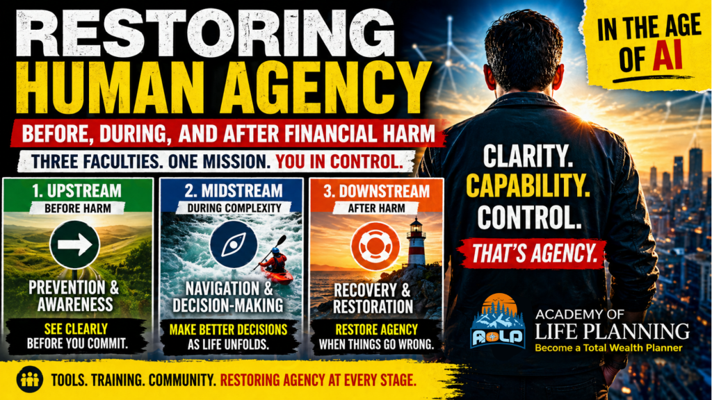 A Total Wealth Planner is someone who has restored their human agency—able to think clearly, act independently, and navigate life, money, and uncertainty without reliance on structurally untrustworthy systems.
